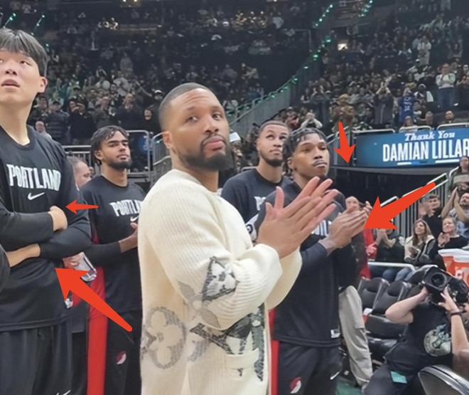 大家知道最近开拓者在NBA常规赛打败雄鹿,拿到了两场客场胜利。在这场比赛开始之前,利拉德作为雄鹿曾经的核心一员也来到现场观战,雄鹿主场特意播放了一支视频致敬利拉德。当时直播有一个画面显示,现场很多人都在鼓掌为利拉德感到开心,但与此同时,杨瀚森在这个画面当中却是双手抱在胸前,没有任何鼓掌的反应,整个人看起来也是有些严肃。